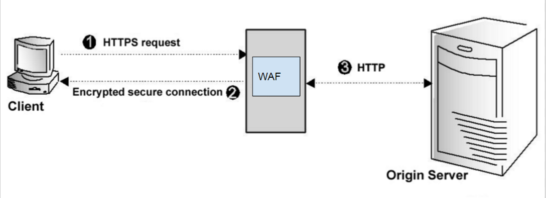 • WAF opens and inspects the traffic, and then forwards the decoded traffic to the web server on port 80.