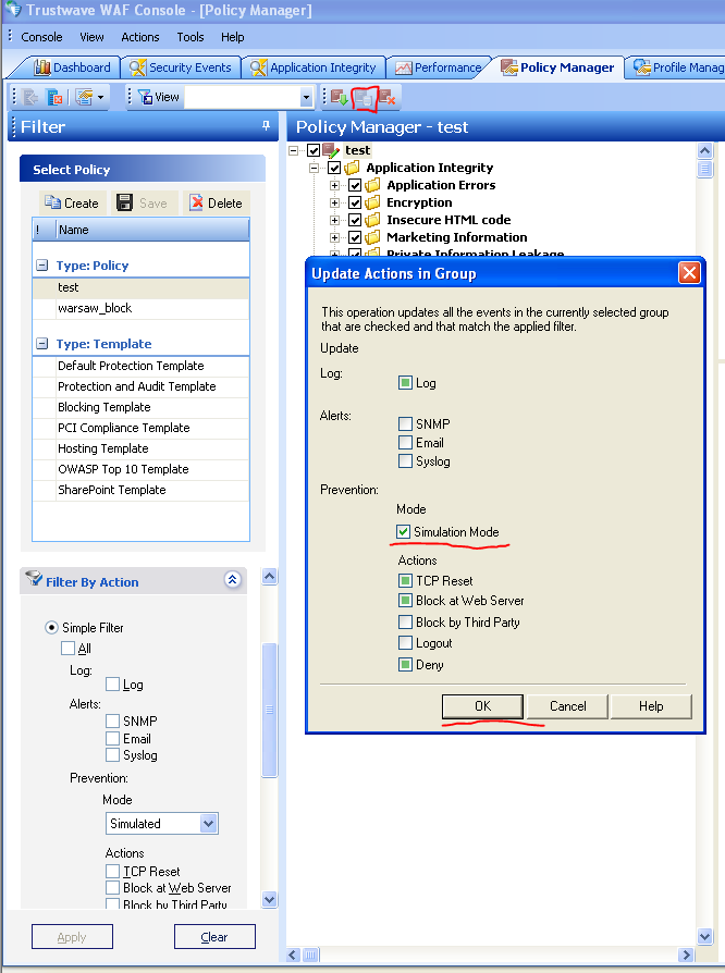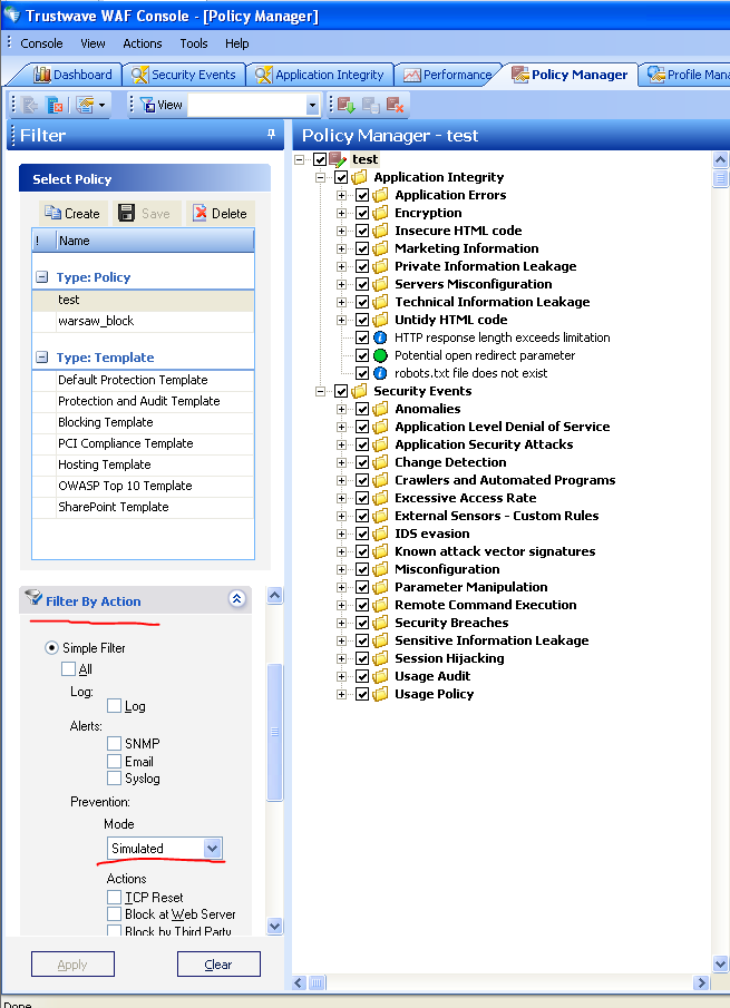 • Select Prevention Mode "Simulated"