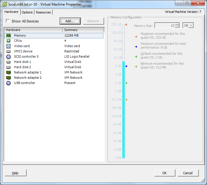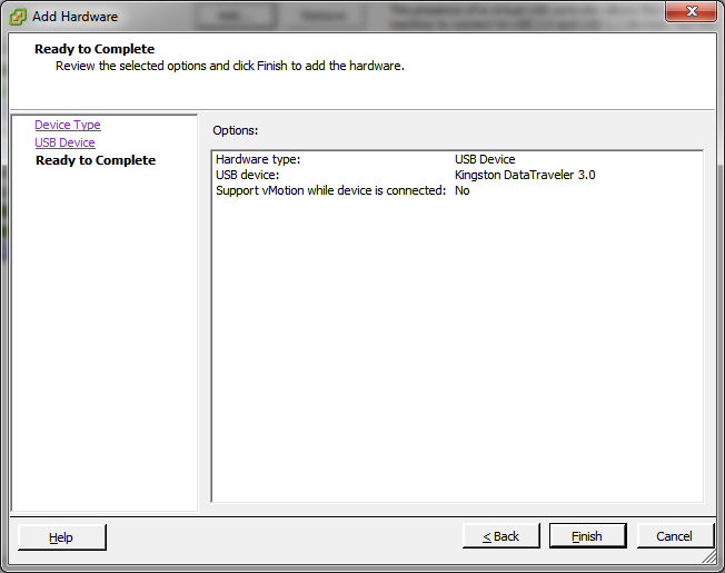 2. Launch the vSphere Client/administration interface, choose the SR VM, and load its settings. Under the Hardware tab, check whether you have USB Controller and USB Device included in the list of devices.