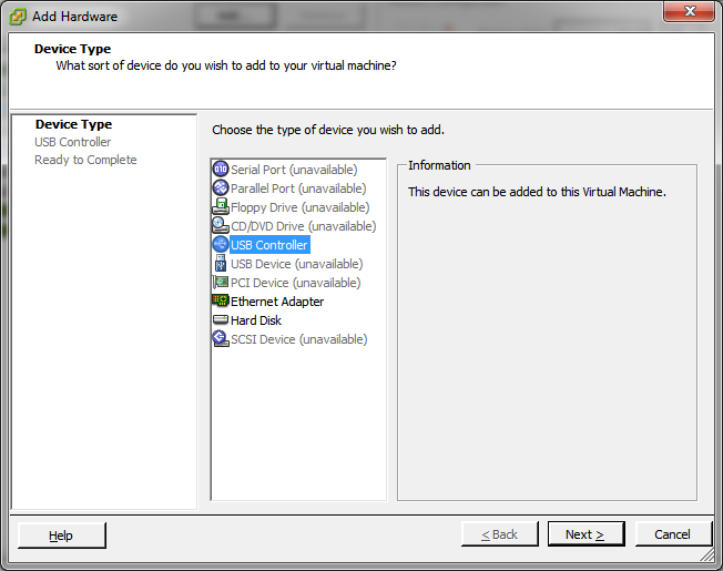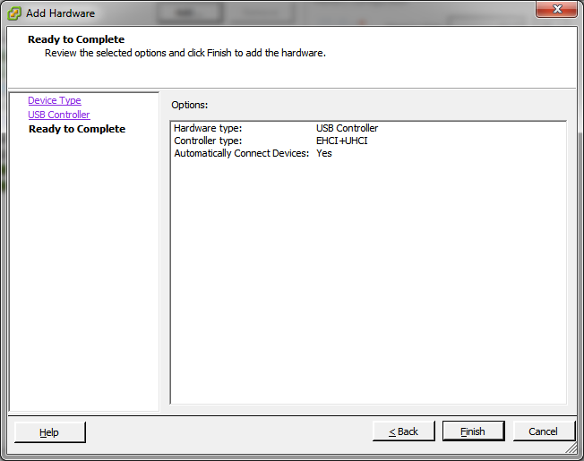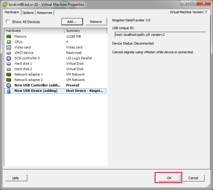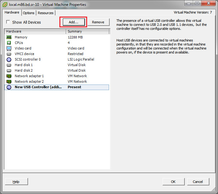 The steps below cover the configuration of a USB Controller and a USB Device on the SR VM: