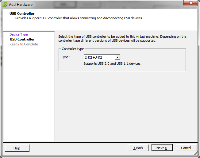 4. Add a USB Controller (EHCI  & UHCI) as shown in the following screenshots.