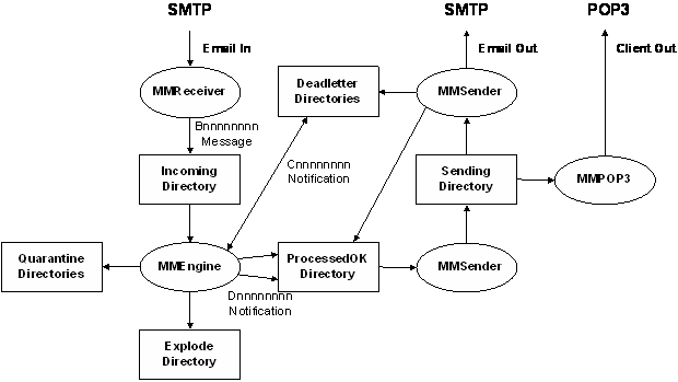 - Once received the MMEngine service will unpack a copy of the email message into the Unpacking directory. By default, this directory is located at \Unpacking. Once processed the messages are either placed in a user defined Quarantine directory or into the ProcessedOK directory. By default, this directories are located at \Quarantine and \Queues\ProcessedOK.