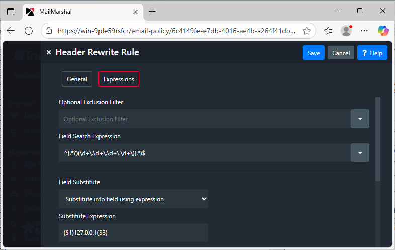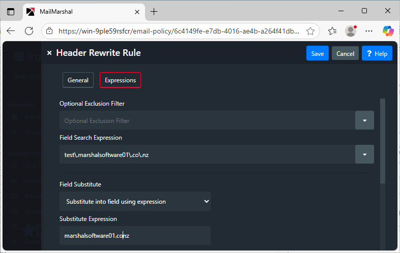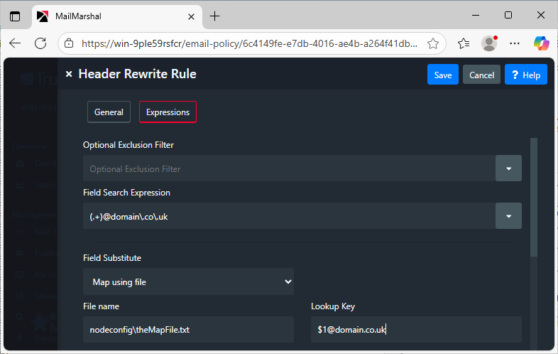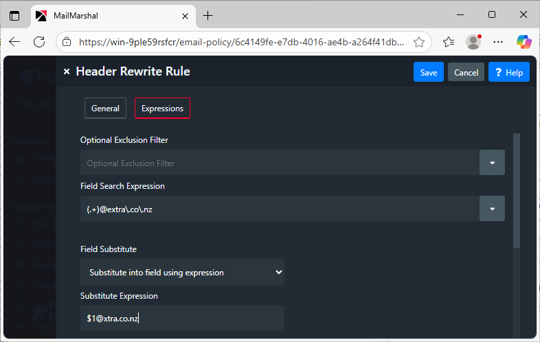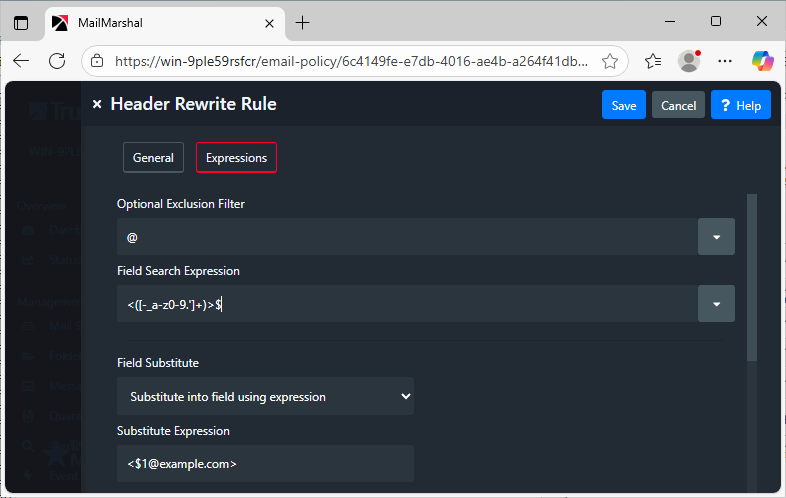 Caution! Header Re-Write rules are extremely powerful. Test any rules thoroughly, as errors can cause all affected messages to be undeliverable.