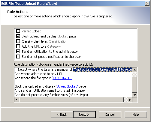 WebMarshal can send email to the administrator when a rule is triggered. The default rules installed with WebMarshal 3.x are configured to notify the administrator for many content blocking rules, as well as virus and malware scanning rules and scanner failures.