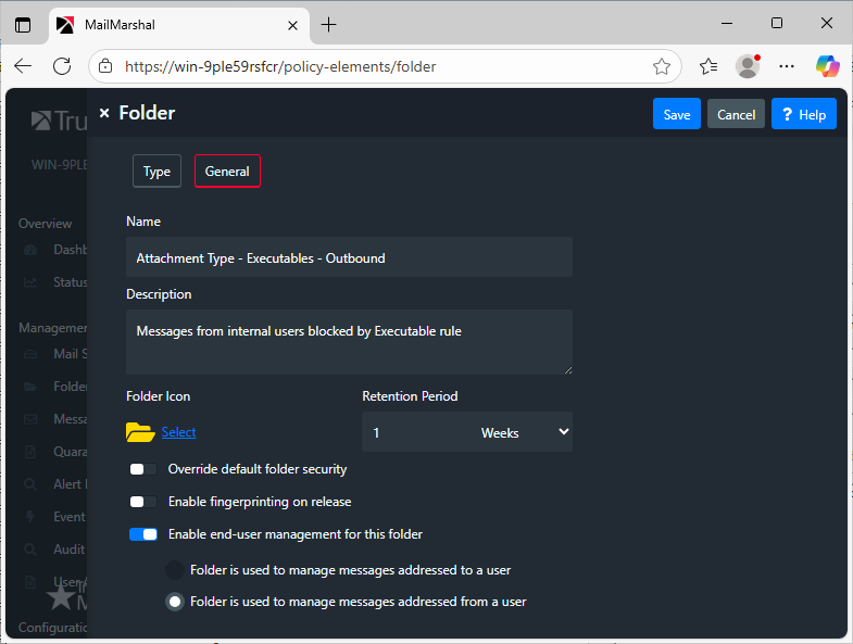 • For rules that apply to incoming messages, always use a folder that has the setting Folder is used to manage messages addressed to a user (or inbound messages).
