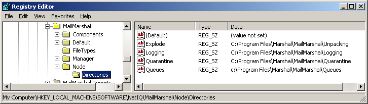 • Create the values in the following location: {MailMarshal location}\Node\Directories