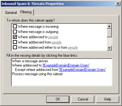 Except where addressed from '[ExampleDomain] Domain Users'