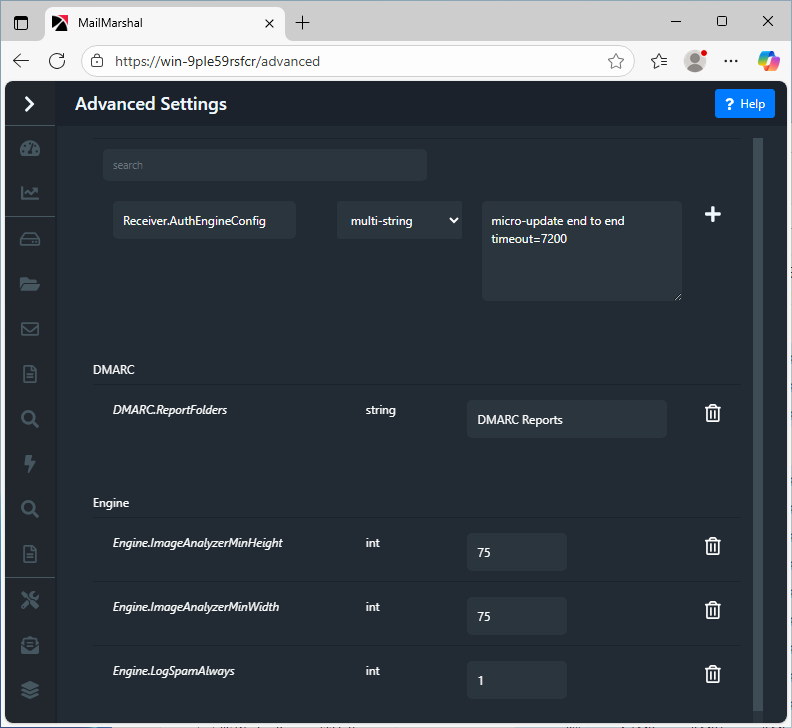 • In version 8.X: HKEY_LOCAL_MACHINE\SOFTWARE\Trustwave\Secure Email Gateway\Default\Receiver