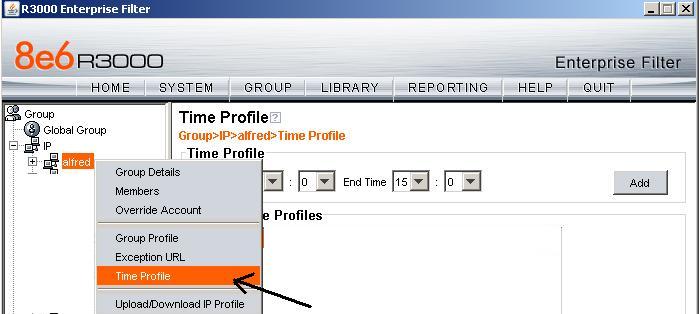 3.Click on your new group or single user you just created and look for Time Profile as shown below