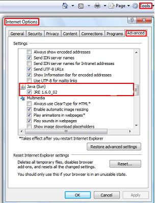 disable Java, clear the option under Java. When you are finished, click OK.