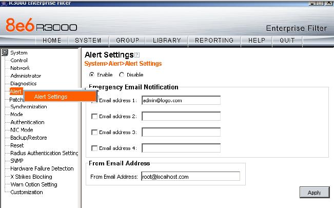 Go to System >Alerts as shown below and add your information, always have another admin if possible