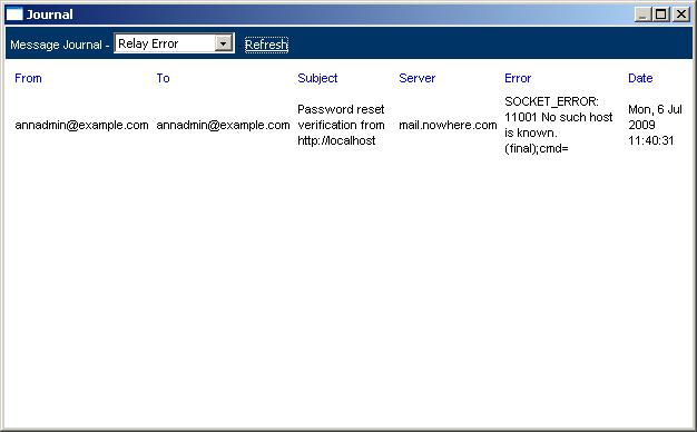 4. Use the menu at the top to review journal entries, particularly the Relay Error and System Error listings.