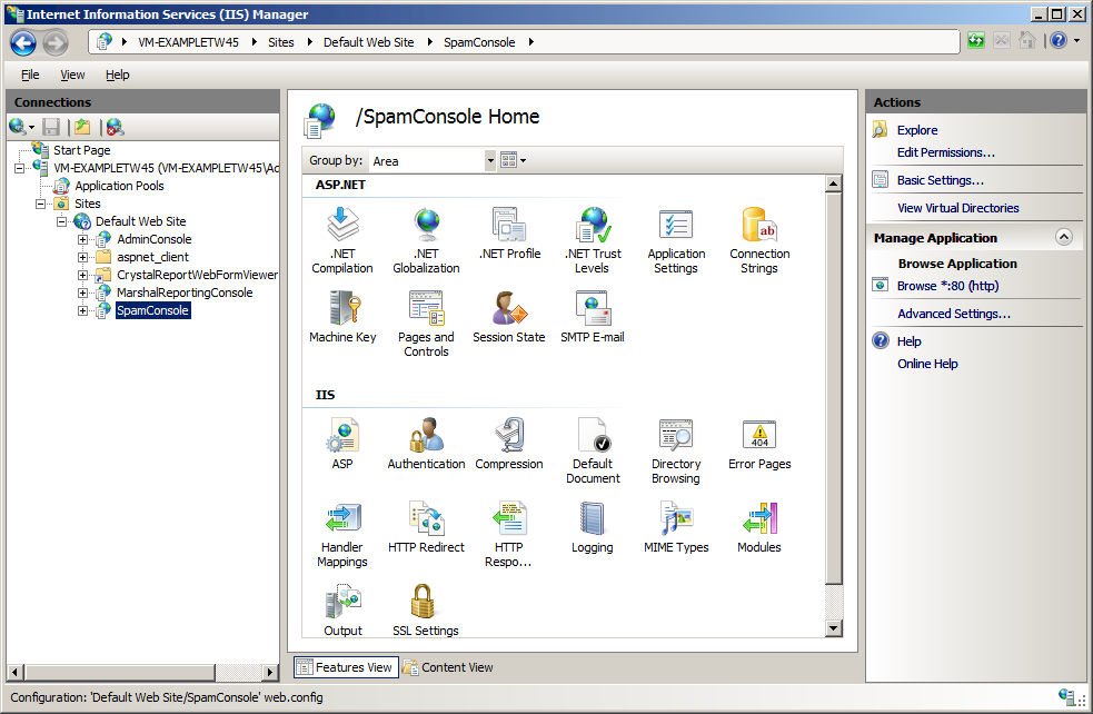 - For SEG SQM, by default, this is Default Web Site/SpamConsole