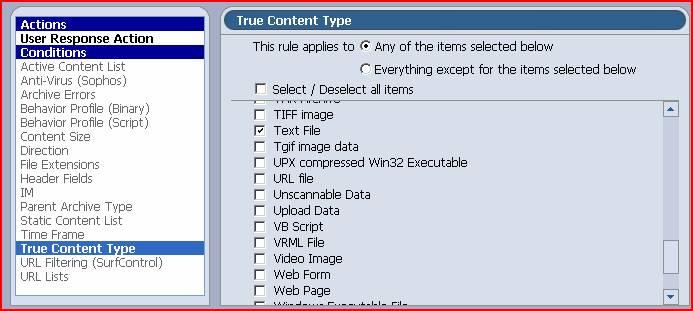 2. In the “True Content Type” condition, select text file. (Perl scripts are downloaded as text files.) Please see the picture below.