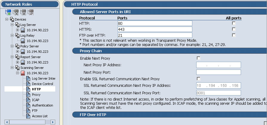 1. From the management console, navigate to Settings > Devices > Scanning Server >HTTP: Allowed Server Ports in URI.