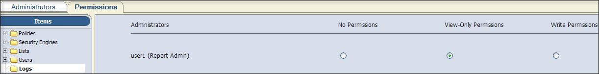 3. Modify the Logs Permissions for the Administrator (View-Only permissions needed):
