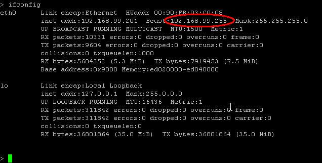 As shown, the broadcast address of the interface is incorrectly set to 10.0.0.255.