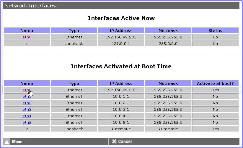 After running the initial setup wizard, go to the Setup Console "Network Interfaces" and "Edit Bootup Interface" pages for the given IP address.
