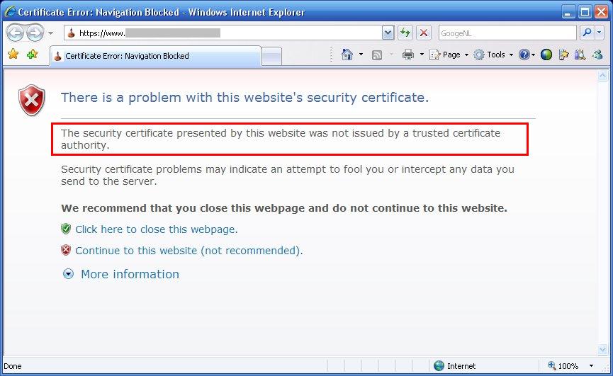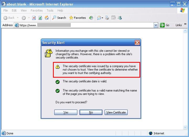 The user will receive a certificate warning because the Finjan signing certificate is by default not in the browser's trusted certificate issuers list.