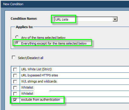 1. Step: Create a list of URLs you want to exclude (It might be necessary to do a packet trace and analyze the destination URLs)
