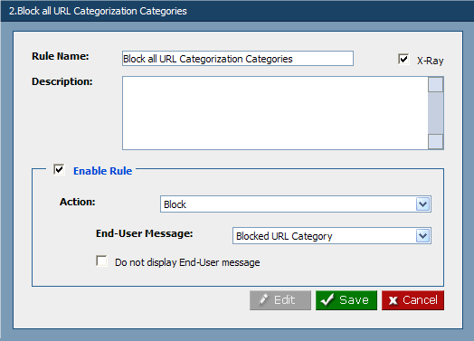 Now using an HTTP analyzer browse through the scanner and see if the rule is matched, and what is displayed in the End-User Message.