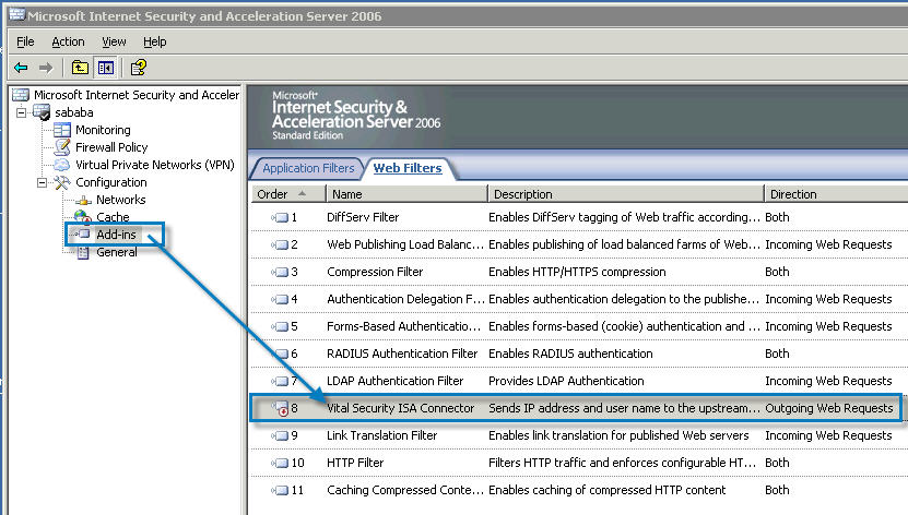In ISA Server Management, select the Finjan ISA plugin. In the section "Configuration / Add-ins", mark the option as checked.