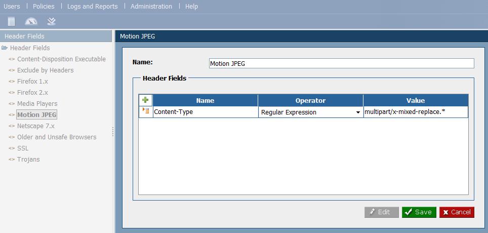 4. Give the new Header Fields component a name, such as “Motion JPEG”