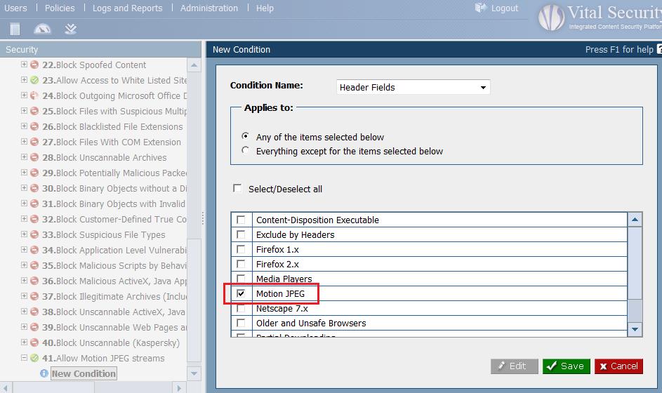 2. Navigate to Policies -> Condition Settings -> Header Fields
