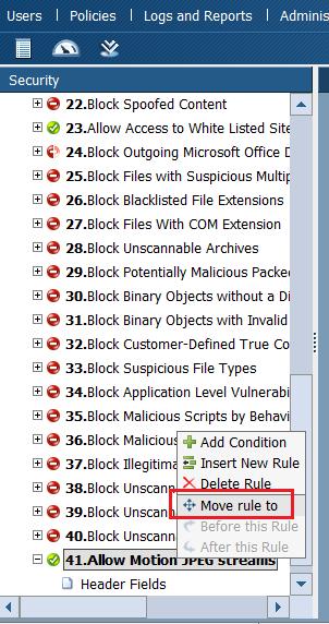 Right-click on the rule again, and select “Move rule to”