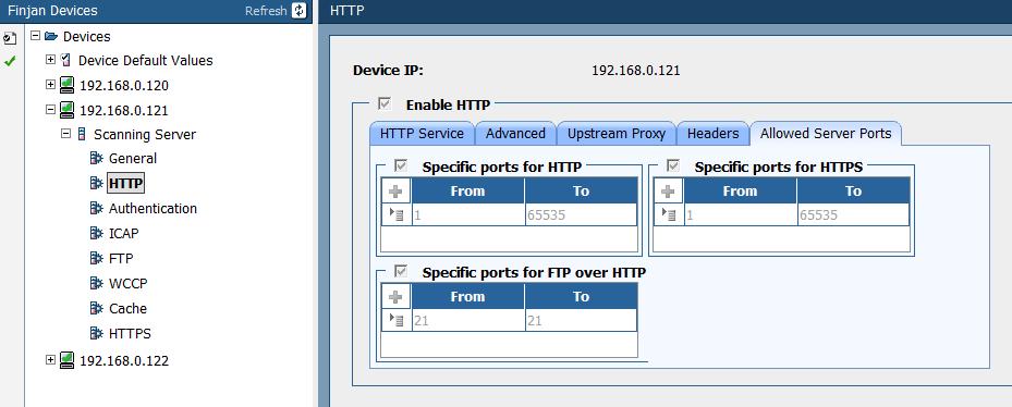 The Finjan default is to allow HTTP port 80 only. Consequently, additional ports must be allowed so that iTUnes radio stations can stream through Finjan.