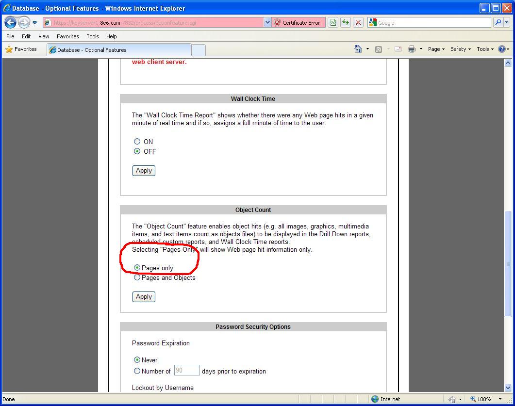 (If you choose to keep "Pages and Objects" selected and wait for the next patch to fix this issue, you can still view the Server Statistics in the admin GUI, just select "Server Status" and the "Expiration" pages.