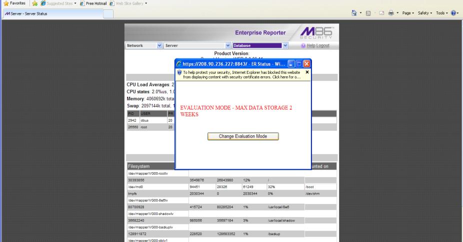 7. Click on the button that says Change Evaluation Mode. If you have not accepted the certificate before you may see the warning page again.