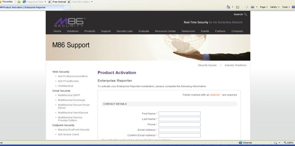 11. You will be redirected to the product activation page. Enter all your information, and Trustwave activation department will send you an activation code via email.