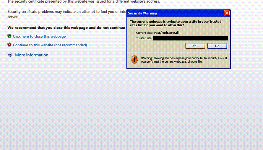 4. Click yes on the certificate.