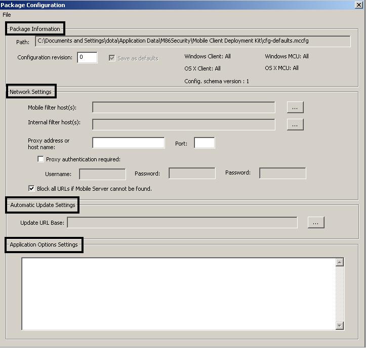 Package Information frame (new in this release) displays the Path information for the package to be configured, formerly displayed in the Package loaded field at the bottom of the Mobile Client Configuration Editor window.
