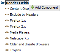 - Right-click on the Header Fields folder in the left pane and left-click on Add Component.