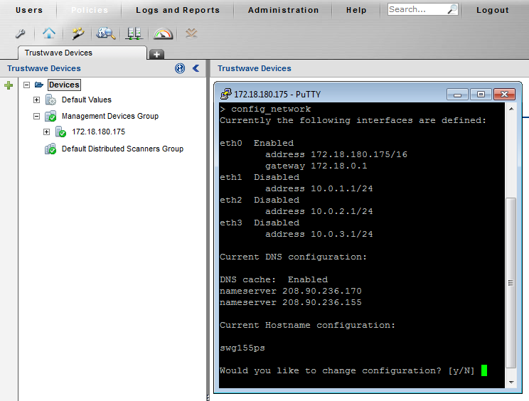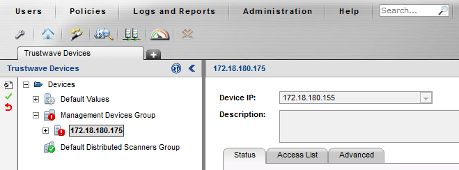 6. Navigate to the GUI using the new IP address, and go to Trustwave Devices.