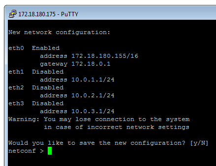 5. When a screen with the new network configuration opens as shown below, type Y to save the configuration changes: