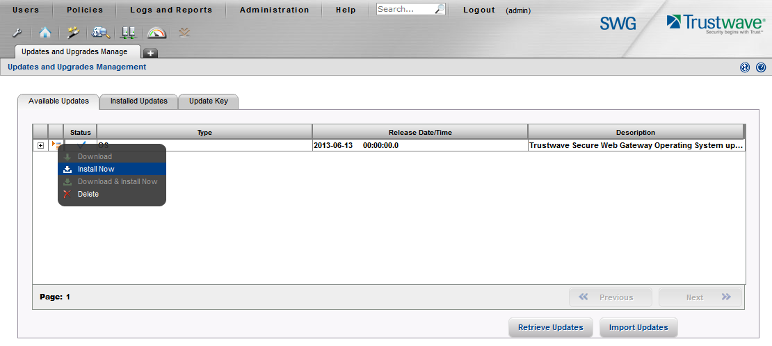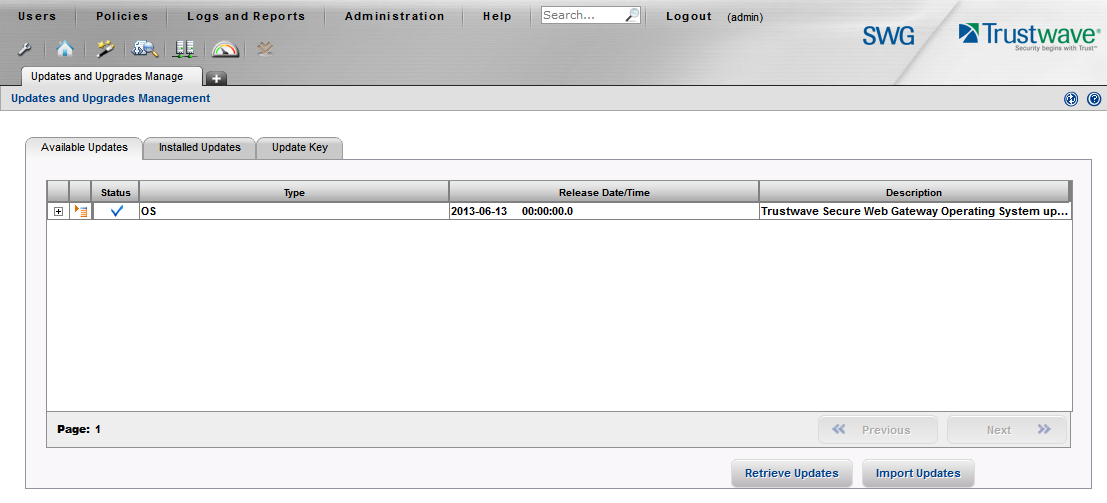 Patches, fixes and software updates for Secure Web Gateway appliances are released periodically. Patches typically address specific issues and are initially released as standalone packages before they are included in a general maintenance update. This article describes how to install any .fup patch or update.