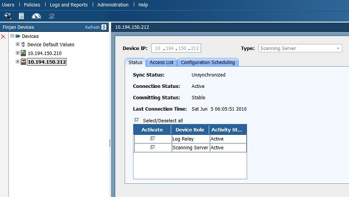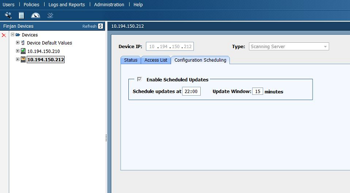 If a scanning server does not synchronize after an update is committed, check if its Enable Scheduled Updates option is activated.