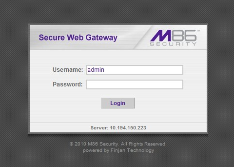 If this is a new installed appliance you will be prompted to change your password (default 'finjan') and receive this screen