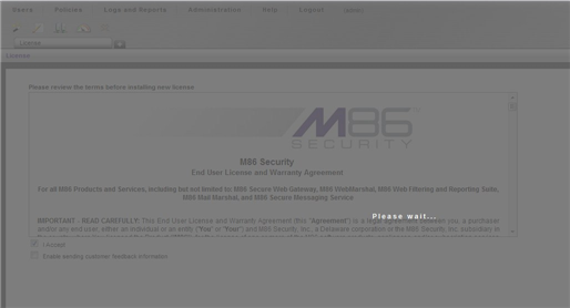 Please note that replacing a license with different licensed components then the previous license installed on the appliance may cause downtime as the new components are reconfigured on the Policy server and also on the scanners and the latest updates are being installed.