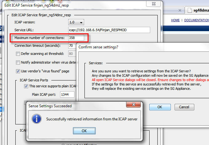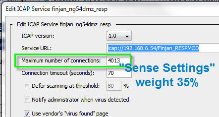 There are two options: - The preferred option is to change the weighting in SWG devices section and limit it to 35% per ICAP client (even if when combined they do not add up to 100%). Now "Sense Settings" should complete successfully.