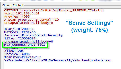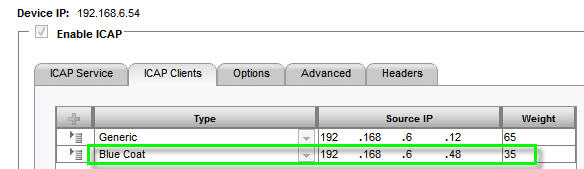 - Example: If using two ICAP clients weighted at 50:50, they are each capable of handling 8K (8,192) connections (see ICAP section under Scanner / "Devices"). Therefore, each ICAP client's theoretical maximum connections is 5,734 (70%) in RESP mode and 2,458 (30%) in REQ mode.