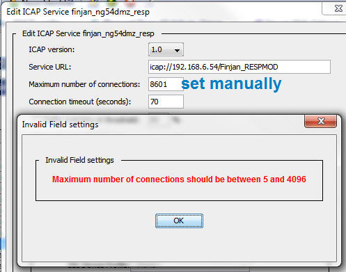 - ICAP client service configuration fails to detect and apply this value in ICAP Response mode (sense Request Mode settings work fine). Value is unchanged, and remains under 16K.
