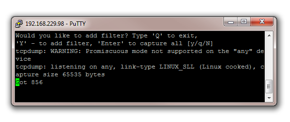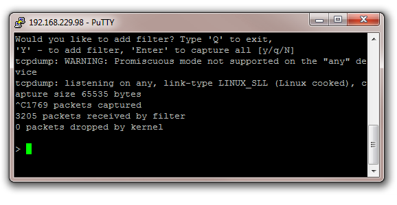 3. The limited shell's implementation of tcpdump supports filters to reduce the number of packets to be collected, similar to the filters available on the Linux tcpdump command (e.g., port 8080, host 192.168.1.29, etc.).