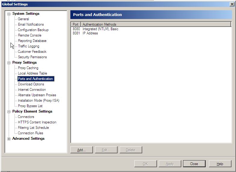 - WebMarshal must accept IP based authentication. By default WebMarshal accepts IP based authentication on port 8081. To customize this setting, in the WebMarshal Console navigate to Tools > Global Settings > Proxy Settings > Ports and Authentication.