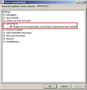 Note: By default the next-generation Java Plug-in is not enabled on Mac OS.