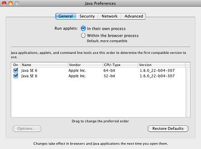 If there are problems viewing Java applets on Mac OS, make sure the next-generation Java Plug-in is enabled.
