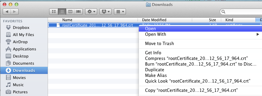 Logon to your SWG All-In-One or Policy Server web administration GUI and export the Scanning Server HTTPS certificate as shown in the screenshot below. The exported file will have a .crt extension and will need to be copied to and deployed on all Mac OSX clients.